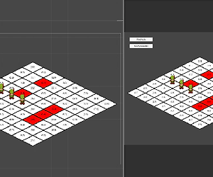 1 2 3 4 5 6 7 8 9 10 11 12 13 14 15 16 17 18 19 20 21 22 23 24 25 26 27 28 29 30 31 32 33 34 35 36 37 38 39 40 41 42 43 44 45 46 47 48 49 50 51 52 53 54 55 56 57 58 59 60 61 62 63 64 65 66 67 68 69 70 71 72 73 74 75 76 77 78 79 80 81 82 83 84 85 86 87 88 89 90 91 92 93 94 95 96 97 98 99 100 101 102 103 104 105 106 107 108 109 110 111 112 113 114 115 116 117 118 119 120 121 122 123 124 125 126 127 128 129 130 131 132 133 134 135 136 137 138 139 140 141 142 143 144 145 146 147 148 149 150 151 152 153 154 155 156 157 158 159 160 161 162 163 164 165 166 167 168 169 170 171 172 173 174 175 176 177 178 179 180 181 182 183 184 185 186 187 188 189 190 191 192 193 194 195 196 197 198 199 200 201 202 203 204 205 206 207 208 209 210 211 212 213 214 215 216 217 218 219 220 221 222 223 224 225 226 227 228 229 230 231 232 233 234 235 236 237 238 239 240 241 242 243 244 245 246 247 248 249 250 251 252 253 254 255 256 257 258 259 260 261 262 263 264 265 266 267 268 269 270 271 272 273 274 275 276 277 278 279 280 281 282 283 284 285 286 287 288 289 290 291 292 293 294 295 296 297 298 299 300 301 302 303 304 305 306 307 308 309 310 311 312 313 314 315 316 317 318 319 320 321 322 323 324 325 326 327 328 329 330 331 332 333 334 335 336 337 338 339 340 341 342 343 344 345 346 347 348 349 350 351 352 353 354 355 356 357 358 359 360 361 362 363 364 365 366 367 368 369 370 371 372 373 374 375 376 377 378 379 380 381 382 383 384 385 386 387 388 389 390 391 392 393 394 395 | using System.Collections; using System.Collections.Generic; using UnityEngine; using UnityEngine.UI; using System.Linq; public class TestIsometric_4 : MonoBehaviour { public Button moveBtn; public Button buildingBtn; public int colCount, rowCount; public Vector2 startPos; private GameObject mapTile; private Coroutine routine; private int tileWidth = 64; private int tileHeight = 32; private int col = 0; //행 private int row = 0; //열 private GameObject character; private GameObject building; private GameObject motherNode; private GameObject targetNode; private GameObject selectedTile; private Dictionary<Vector2, GameObject> dicFIndTile = new Dictionary<Vector2, GameObject>(); private List<GameObject> closeList = new List<GameObject>(); private List<GameObject> movePositionList = new List<GameObject>(); void Start() { this.CreateCharacter(); this.CreateMap(); this.TileCheck(); this.moveBtn.onClick.AddListener(() => { this.FIndNextPos(); }); this.buildingBtn.onClick.AddListener(() => { this.Createbuilding(); }); } void TileCheck() { if (this.routine != null) { StopCoroutine(this.routine); } this.routine = StartCoroutine(this.TileCheckImpl()); } IEnumerator TileCheckImpl() { while (true) { if (Input.GetMouseButtonDown(0)) { Vector2 worldPos = Camera.main.ScreenToWorldPoint(Input.mousePosition); RaycastHit2D hit = Physics2D.Raycast(worldPos, Vector2.zero); if (hit.collider != null && !hit.collider.GetComponent<TestTile>().isBlock) { this.ClearMap(); this.targetNode = hit.collider.gameObject; hit.collider.GetComponent<SpriteRenderer>().color = Color.cyan; } } yield return null; } } public void Createbuilding() { if (routine != null) { StopCoroutine(this.routine); } this.routine = StartCoroutine(this.CreatebuildingImpl()); } private IEnumerator CreatebuildingImpl() { var building = Instantiate(Resources.Load<GameObject>("Prefabs/isoTile")); while (true) { Vector2 ray = Camera.main.ScreenToWorldPoint(Input.mousePosition); RaycastHit2D hit = Physics2D.Raycast(ray, Vector2.zero); building.transform.position = ray; if (Input.GetMouseButtonDown(0)) { if (hit.collider != null) { hit.collider.gameObject.GetComponent<TestTile>().isBlock = true; building.transform.position = hit.collider.gameObject.transform.position; break; } } yield return null; } this.TileCheck(); } private void FIndNextPos() { if (this.routine != null) { StopCoroutine(this.routine); } this.routine = StartCoroutine(this.FindNextPosImpl()); } private IEnumerator FindNextPosImpl() { while (true) { var dir = (this.motherNode.transform.position - this.character.transform.position).normalized; var nextNode = Vector2.Distance(this.character.transform.position, this.motherNode.transform.position); var distance = Vector2.Distance(this.character.transform.position, this.targetNode.transform.position); this.character.transform.position += dir * 2f * Time.deltaTime; if (nextNode <= 0.05f) { if (distance <= 0.05f) { Debug.Log("도착"); this.TileCheck(); break; } this.FindNode(); Debug.Log("다음"); } yield return null; } } private void CharacterMovePoint() { var mother = this.motherNode.GetComponent<TestTile>().vec2; var data = this.character.GetComponent<TestTile>().vec2; var motherX = mother.x - 1; var motherY = mother.y - 1; var maxX = mother.x + 1; var maxY = mother.y + 1; if (data.x == motherX && data.y == mother.y) { //Debug.Log("오른쪽아래"); this.character.GetComponent<Animator>().Play("hero_rightdown"); //Debug.Log(data); } if (data.x == mother.x && data.y == maxY) { //Debug.Log("오른쪽위"); this.character.GetComponent<Animator>().Play("hero_rightup"); //Debug.Log(data); } if (data.x == maxX && data.y == mother.y) { //Debug.Log("왼쪽위"); this.character.GetComponent<Animator>().Play("hero_leftup"); //Debug.Log(data); } if (data.x == mother.x && data.y == motherY) { //Debug.Log("왼쪽아래"); this.character.GetComponent<Animator>().Play("hero_leftdown"); //Debug.Log(data); } } private void FindNode() { var mother = this.motherNode.GetComponent<TestTile>().vec2; var motherX = mother.x - 1; var motherY = mother.y - 1; var maxX = mother.x + 1; var maxY = mother.y + 1; this.character.GetComponent<TestTile>().vec2 = mother; if (motherX < 0) { motherX = 0; } if (motherY < 0) { motherY = 0; } for (int x = (int)motherX; x <= maxX; x++) { for (int y = (int)motherY; y <= maxY; y++) { if (x < this.colCount && y < this.rowCount) { var data = new Vector2(x, y); var tile = this.dicFIndTile[data]; if (tile.GetComponent<TestTile>().isBlock != true && !this.closeList.Contains(tile)) { if (da