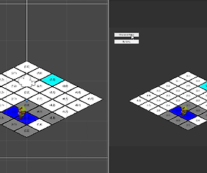 1 2 3 4 5 6 7 8 9 10 11 12 13 14 15 16 17 18 19 20 21 22 23 24 25 26 27 28 29 30 31 32 33 34 35 36 37 38 39 40 41 42 43 44 45 46 47 48 49 50 51 52 53 54 55 56 57 58 59 60 61 62 63 64 65 66 67 68 69 70 71 72 73 74 75 76 77 78 79 80 81 82 83 84 85 86 87 88 89 90 91 92 93 94 95 96 97 98 99 100 101 102 103 104 105 106 107 108 109 110 111 112 113 114 115 116 117 118 119 120 121 122 123 124 125 126 127 128 129 130 131 132 133 134 135 136 137 138 139 140 141 142 143 144 145 146 147 148 149 150 151 152 153 154 155 156 157 158 159 160 161 162 163 164 165 166 167 168 169 170 171 172 173 174 175 176 177 178 179 180 181 182 183 184 185 186 187 188 189 190 191 192 193 194 195 196 197 198 199 200 201 202 203 204 205 206 207 208 209 210 211 212 213 214 215 216 217 218 219 220 221 222 223 224 225 226 227 228 229 230 231 232 233 234 235 236 237 238 239 240 241 242 243 244 245 246 247 248 249 250 251 252 253 254 255 256 257 258 259 260 261 262 263 264 265 266 267 268 269 270 271 272 273 274 275 276 277 278 279 280 281 282 283 284 285 286 287 288 289 290 291 292 293 294 295 296 297 298 299 300 301 302 | using System.Collections; using System.Collections.Generic; using UnityEngine; using UnityEngine.UI; using System.Linq; public class TestIsometric_MoveCharacter : MonoBehaviour { public Button btn; public int colCount, rowCount; public Vector2 startPos; private GameObject mapTile; private Coroutine routine; private int tileWidth = 64; private int tileHeight = 32; private int col = 0; //행 private int row = 0; //열 private GameObject my; private GameObject motherNode; private GameObject targetNode; private GameObject selectedTile; private Dictionary<Vector2, GameObject> dicFIndTile = new Dictionary<Vector2, GameObject>(); private List<GameObject> closeList = new List<GameObject>(); private List<GameObject> movePositionList = new List<GameObject>(); void Start() { this.CreateMap(); this.CreateTile(); this.TileCheck(); this.btn.onClick.AddListener(() => { this.FIndNextPos(); }); } void TileCheck() { if (this.routine != null) { StopCoroutine(this.routine); } this.routine = StartCoroutine(this.TileCheckImpl()); } IEnumerator TileCheckImpl() { while (true) { if (Input.GetMouseButtonDown(0)) { Vector2 worldPos = Camera.main.ScreenToWorldPoint(Input.mousePosition); RaycastHit2D hit = Physics2D.Raycast(worldPos, Vector2.zero); if (hit.collider != null) { this.ClearMap(); this.targetNode = hit.collider.gameObject; hit.collider.GetComponent<SpriteRenderer>().color = Color.cyan; } } yield return null; } } private void FIndNextPos() { if (this.routine != null) { StopCoroutine(this.routine); } this.routine = StartCoroutine(this.FindNextPosImpl()); } private IEnumerator FindNextPosImpl() { while (true) { var dir = (this.motherNode.transform.position - this.my.transform.position).normalized; var nextNode = Vector2.Distance(this.my.transform.position, this.motherNode.transform.position); var distance = Vector2.Distance(this.my.transform.position, this.targetNode.transform.position); this.my.transform.position += dir * 2f * Time.deltaTime; if (nextNode <= 0.05f) { if (distance <= 0.05f) { Debug.Log("도착"); this.TileCheck(); break; } this.FindNode(); Debug.Log("다음"); } yield return null; } } private void FindNode() { var mother = this.motherNode.GetComponent<TestTile>().vec2; var motherX = mother.x - 1; var motherY = mother.y - 1; var maxX = mother.x + 1; var maxY = mother.y + 1; if (motherX < 0) { motherX = 0; } if (motherY < 0) { motherY = 0; } for (int x = (int)motherX; x <= maxX; x++) { for (int y = (int)motherY; y <= maxY; y++) { if (x < this.colCount && y < this.rowCount) { var data = new Vector2(x, y); var tile = this.dicFIndTile[data]; if (tile.GetComponent<TestTile>().isBlock != true && !this.closeList.Contains(tile)) { if(data.x == motherX && data.y == mother.y || data.y == mother.y) { this.movePositionList.Add(tile); } if (data.y == motherY && data.x == mother.x || data.x == mother.x) { this.movePositionList.Add(tile); } this.movePositionList.Remove(motherNode); this.closeList.Add(motherNode); if (!this.closeList.Contains(tile)) { tile.GetComponent<SpriteRenderer>().color = Color.grey; this.SetFGH(); } } } } } this.NextNode(); } private void NextNode() { IEnumerable<GameObject> sortNode = this.movePositionList.OrderBy(x => x.GetComponent<TestTile>().f); this.selectedTile = sortNode.FirstOrDefault<GameObject>(); this.motherNode = this.selectedTile; this.motherNode.GetComponent<SpriteRenderer>().color = Color.blue; } private void ClearMap() { Debug.Log("타일초기화"); for (int i = 0; i < colCount; i++) { for (int j = 0; j < rowCount; j++) { var tiles = new Vector2(j, i); var tile = dicFIndTile[tiles]; tile.GetComponent<SpriteRenderer>().color = Color.white; } } this.closeList.Clear(); this.targetNode = null; this.selectedTile = null; this.movePositionList.Clear(); } #region FGH 활성화 비활성화 private void SetActiveFGH(GameObject tile) { if (!this.movePositionList.Contains(tile)) { tile.GetComponent<TestTile>().G.gameObject.SetActive(false); tile.GetComponent<TestTile>().F.gameObject.SetActive(false); tile.GetComponent<TestTile>().H.gameObject.SetActive(false); } else { tile.GetComponent<TestTile>().G.gameObject.SetActive(true); tile.GetComponent<TestTile>().F.gameObject.SetActive(true); tile.GetComponent<TestTile>().H.gameObject.SetActive(true); } } #endregion private void SetFGH() { foreach (var tile in this.movePositionList) { var getG = tile.GetComponent<TestTile>().g; var getH = tile.GetComponent<TestTile>().h; getG = Mathf.Round(Vector2.Distance(tile.GetComponent<TestTile>().vec2, this.motherNode.GetComponent<TestTile>().vec2) * 10); var dx = Mathf.Abs(tile.GetComponent<TestTile>().vec2.x - this.targetNode.GetComponent<TestTile>().vec2.x); var dy = Mathf.Abs(tile.GetComponent<TestTile>().vec2.y - this.targetNode.GetComponent<TestTile>().vec2.y); getH = (dx + dy) * 10; tile.GetComponent<TestTile>().f = getG + getH; } } #region 맵, 타일 생성 private void CreateTile() { if (this.my == null
